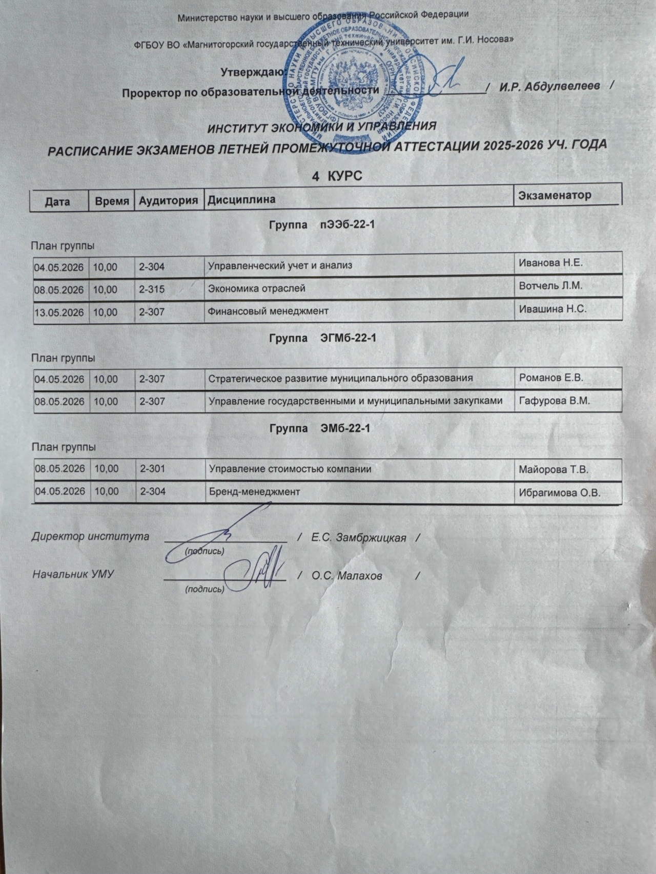 • Расписание экзаменов